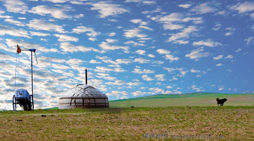 那只黑狗离蒙古包远了点,