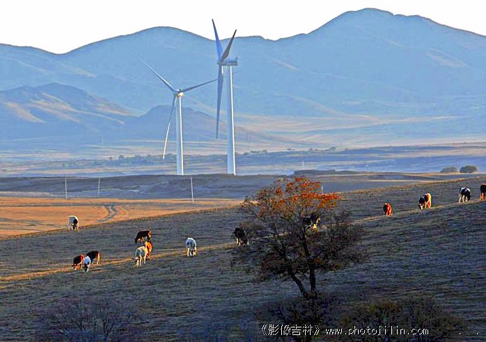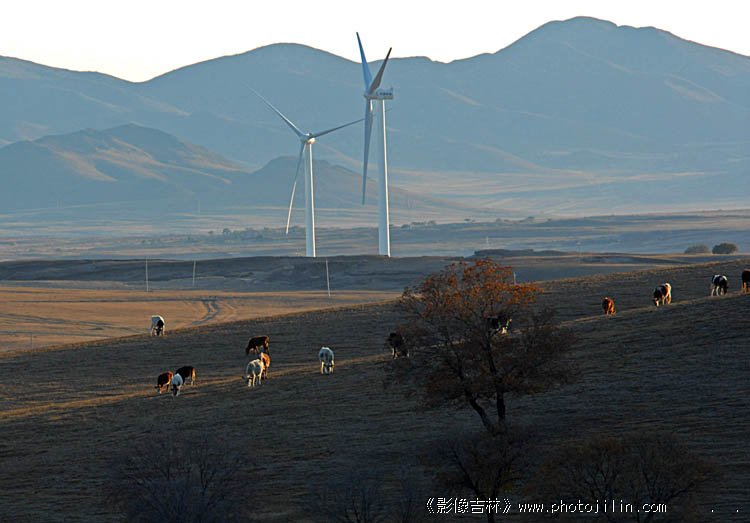 画面真漂亮,秋高云淡,风车下面的牛群散落,一点逆光效果,增添了风光的魅力。整体上看有点发灰,调一下反差怎么样?