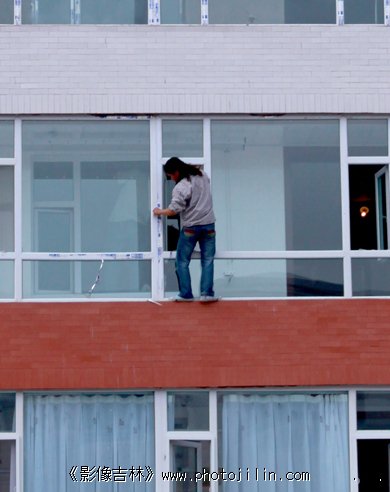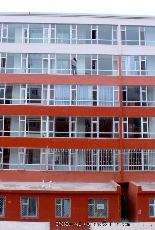 对面楼无防护的高空作业