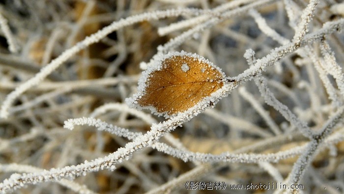 叶子镶嵌的霜雪边,很难得。第二幅背景虚化的更好。欣赏。