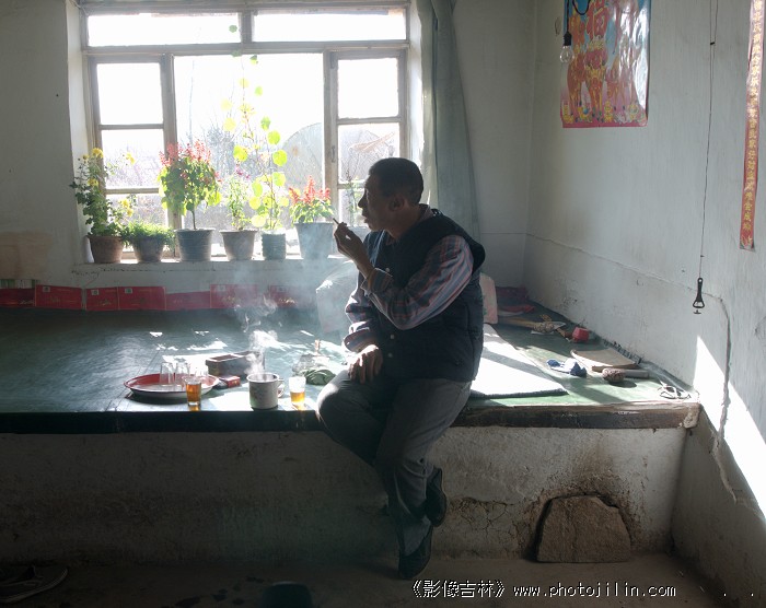 很真实的农村、农民家庭写照:土墙、火炕、歪斜的窗户、年画、苕掃、剪刀、孩子的沙包、作业本、酒瓶起子、茶缸子、玻璃杯子、破袜子、盛开的鲜花以及窗外的电视抛物线天线、主体人物穿着、形象等等,把个东北现实农村、农民家庭刻画得淋漓尽致。采风楼主真是走到了最基层。佩服,欣赏。