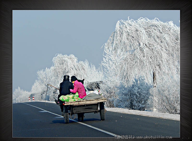 腊月里来北风刮,千树万树都带“挂”。夫妻驾车跑得快,不知动力它是啥?:D 。很有生活气息的拍摄。欣赏。