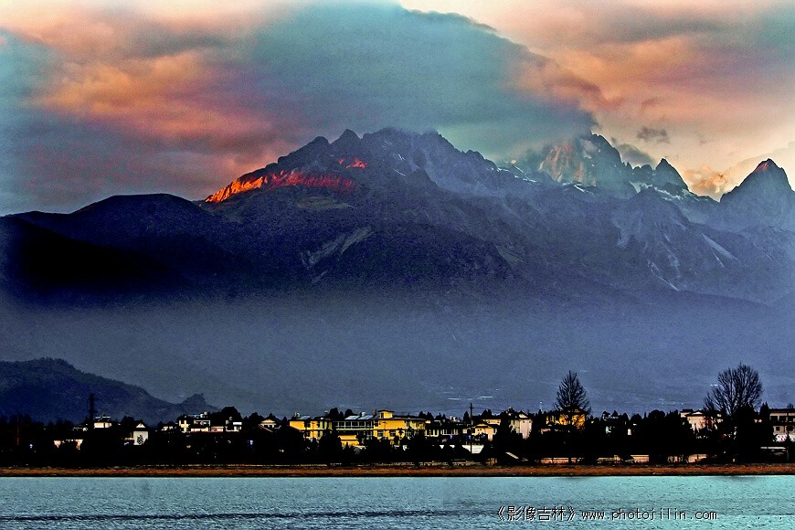 原帖由 颂疆 于 2010-1-27 8:07:00 发表 巍峨的雪山,缭绕的云霞,沉寂的村庄,一幅美丽的西部大片。画面下部有木刻画的效果,与上部格调不一致,是抠像吧。:D |