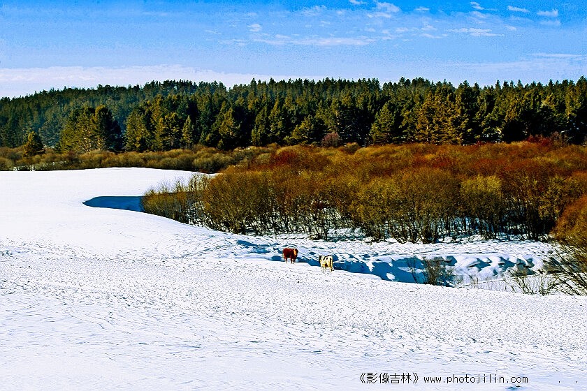 呵,冬季的红柳,苍绿的松林,好熟悉的地方。片子透落。