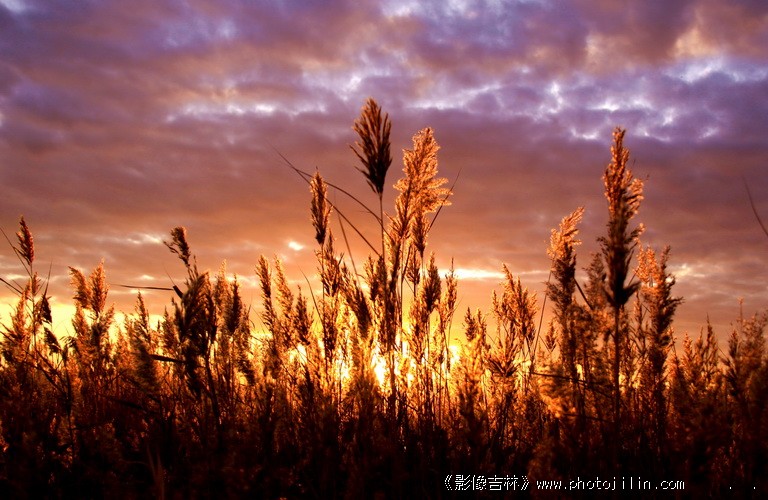 晚霞灿烂,逆光下的芦花非常美。
