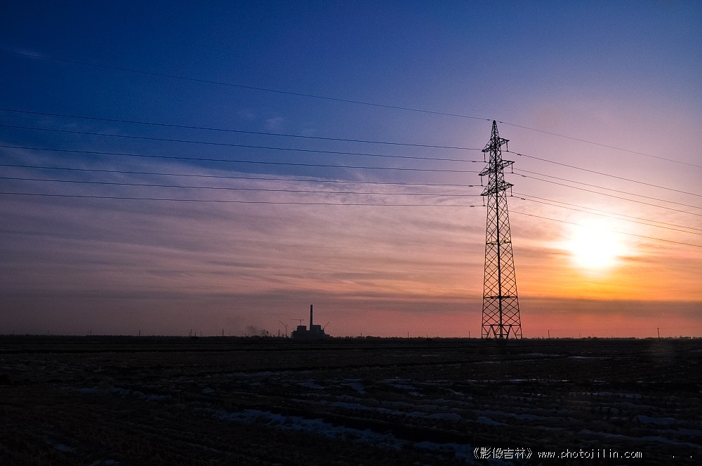 非常好的构想,晚霞与天空漂亮,一个输电线路和耸立着的电塔作为前景把视觉引向遥远,和谐的构图,美丽的色彩。可惜电厂小了一点。
