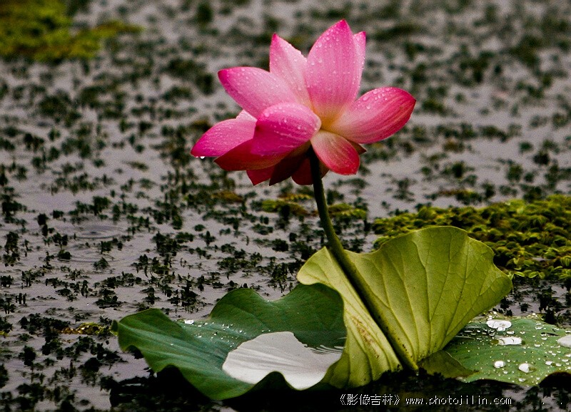 细雨菲菲中的荷花亭亭玉立,