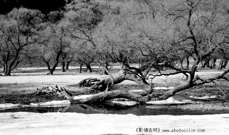 两棵树如同两条卧龙。