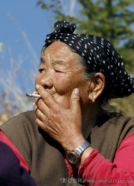 好像是一个人,一个抽烟的老太太。