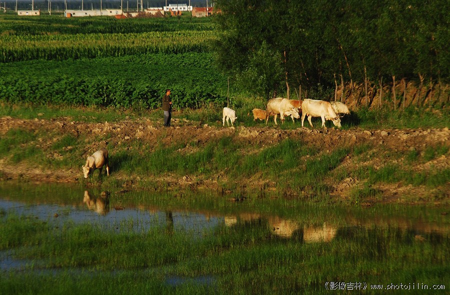 喜欢第二片。美就美在那只到河边河水的牛,增添了田园风景氛围。