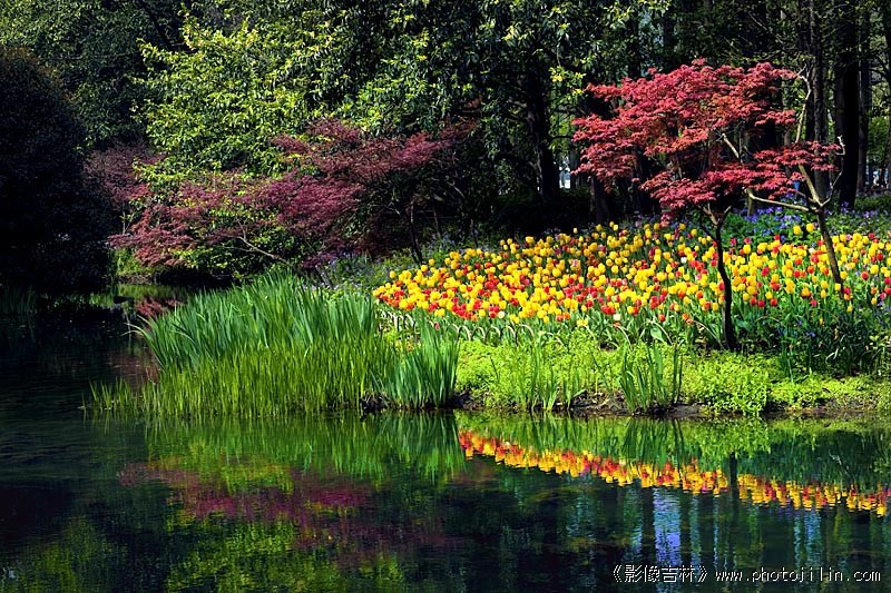 郁金香的倒影非常漂亮。