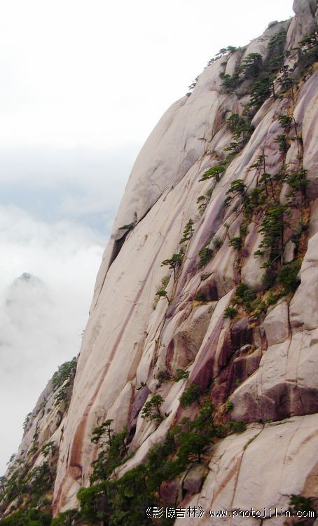 光滑陡峭的山上还可以生长松树,真看得出有些植物的顽强生命力。