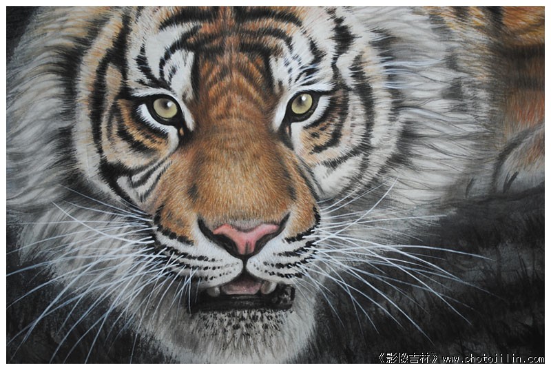 感谢傲骨老师首赏并高评:share: 历经十多天终于完成了这幅准备参展的国画《虎》作,现在没有题款、没有装裱。完善之后会全图发往书画版的供赏。这些天来没有出去摄影,也很着急。看到大家最近拍了很多、很好的秋花、秋草、秋山、秋水、秋容、秋貌,真的很羡慕,大家辛苦了!片子拍的都非常的棒!影像吉林非常的棒!永远的棒!