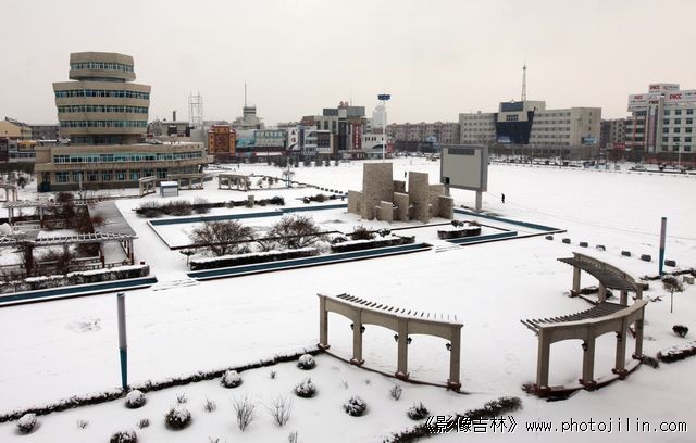 这张片子拍的好,记录了白城的第一场雪。广场的照片很多,这种构图确实新鲜,老辣。干净利索,别具一格。