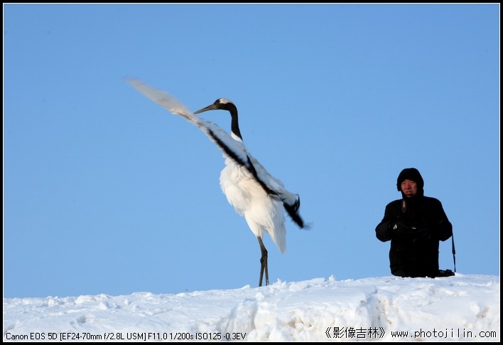 冬天也有丹顶鹤在野外。