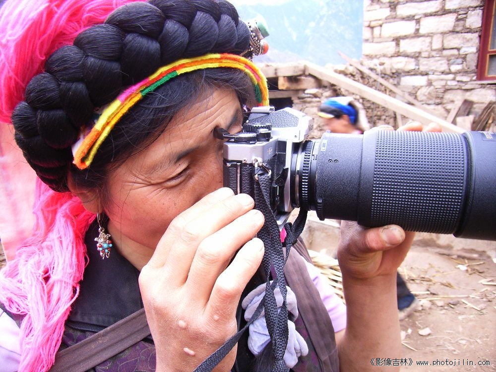 这是一台胶片机,很专业的镜头,女人服饰很有特色,也很专注。好片!