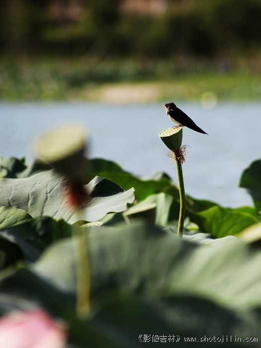 秋燕恋荷,动感十足;虚实有度,构图精美。