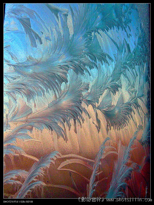 昨晚熬了大半宿的夜,今早醒来时,太阳已温热了我的床头。我赶紧披衣下床,展展懒懒的身躯,来到了卧室的南窗前眺望窗外,哦,下雪了,记忆中,这是北方第二场雪了吧。透过玻璃窗,远远望去,大地有些花白;枯黄了的蒿草如同新娘披上了白纱;远处,屋顶上的彩钢瓦白里透着红,蓝里镶着白,呈现出线条般的美丽。从铝合金窗户框的缝隙中钻进来丝丝的冷风,使我不禁打了个冷战,便立刻感觉到我家的北阳台一定结满了冰窗花。我快步走出卧室,窜过过厨房,推开北阳台的门,哇!果然如此,几大片的玻璃上都结满了不同样式的冰窗花。北阳台是我家冬日里的“冰雪世界”,要想在这里久留,就得穿上厚厚的棉衣,高筒的棉靴,要不你想细细的浏览、观赏完每片玻璃上的冰窗花,非把你冻筛糠了不可。我带着已经布满全身的凉气跑回卧室,按着惯例在衣柜里取出御寒衣将自己武装起来,带上心爱的相机冲进了我的“冰雪世界”。几年的时间了,我一直把我家的北阳台视为我“冬日的摄影基地”。我家是一百零五平米的楼房,北阳台是直通的长廊,因为是六楼,十二块宽大的玻璃显得北阳台格外明亮。每当太阳刚刚从地平线上升起,一缕缕晨光首先普照在我家的阳台上,一束束的冰窗花,在晨光的辐射中,在阳光的照耀下,更加显得婀娜多姿,晶莹剔透。在我的“冰雪世界里”,我一块玻璃一块玻璃的观赏着冰窗花,仔细的端详着每一束冰窗花的结花细节,用我手中的相机,从不同角度,从不同侧面,将每一块玻璃上的冰窗花都记录下来。这是2010年入冬以来我家“冰雪世界”里的第一批冰窗花,由于上冻前擦的窗玻璃,所以没有太多的灰尘杂质污染,冰窗花的每丝冰线也就非常的清晰、晶莹。瞧,这一幅幅晶莹、细描、卷刻般的冰窗花,有如塞北大地上的白桦林;有如荷塘中静静平叶托抚着的滴滴露珠;有如迎风不惧摇曳的苇丛;有如根扎水底依水荡漾的须草;有如海洋里的珊瑚;有如束束雄鸟的尾羽;有如孔雀开屏;有如昆仑山上的雪莲;阳光照进来的时候,气雾水流,冰窗花交叉的枝纹离去的瞬间,留下的景致又如团团富贵的牡丹;绽放的冬菊;高山的瀑布;节日的礼花……我爱我的“冬日摄影基地”,我爱我的“冰雪世界”,我爱我温馨的家园,更爱北阳台那千姿百态的冰窗花… …附件: