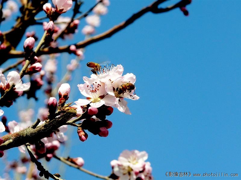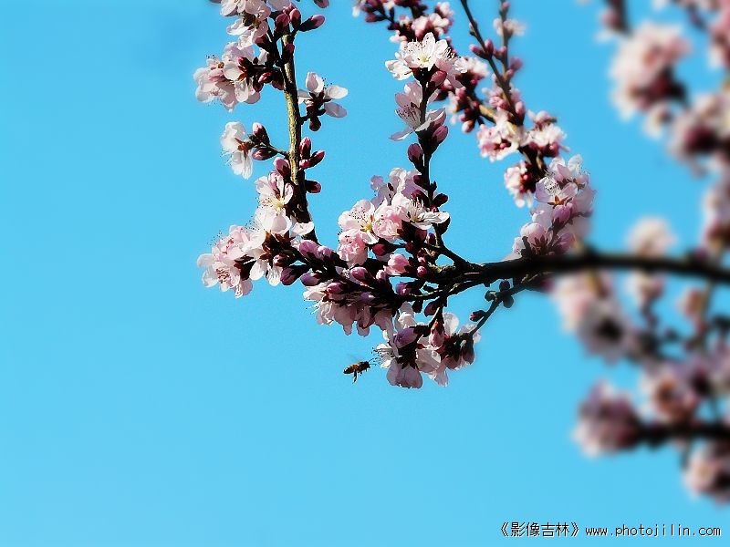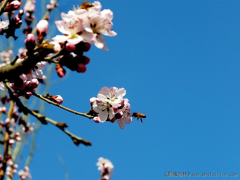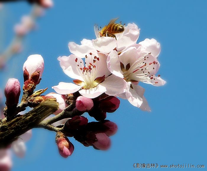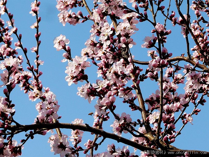迎春桃花映日红