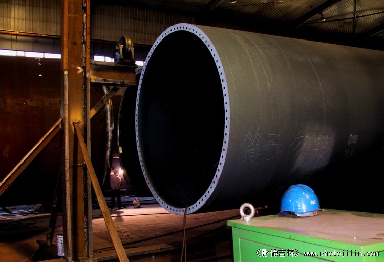 这是生产风电塔筒的工厂。