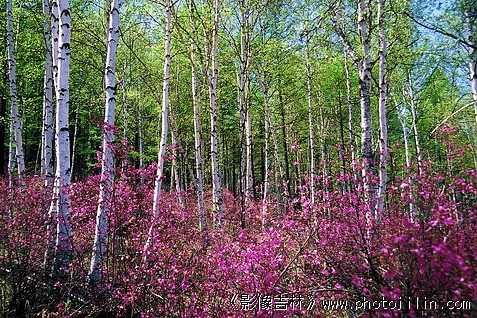 漂亮的杜鹃花,洁白的白桦————美丽。