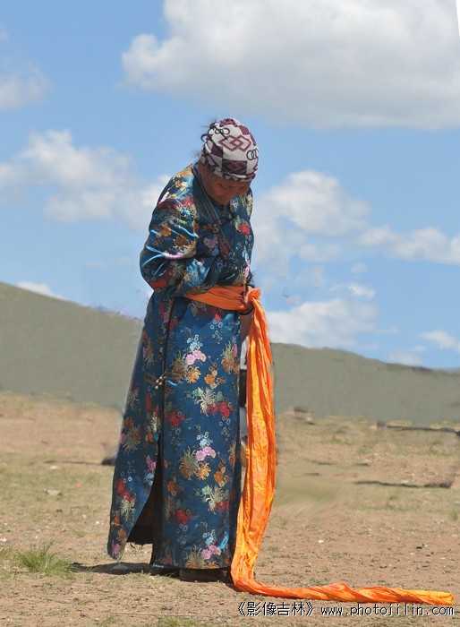 腰带,长袍,头巾都展现了蒙古女人的典型形象。虽然看不到面部表情,但是画面整体语言使我们强烈的感悟到了女人特有的那种自我欣赏的快慰感。