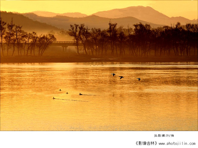 衔远山,吞大江,飞禽戏水,金度夕杨,气象万千,好壮美的景致。