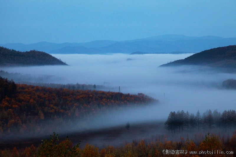 飘渺云雾环绕,隐隐秋山显露。衔远山,似云河,好一幅壮美山河秋色。美景佳作!