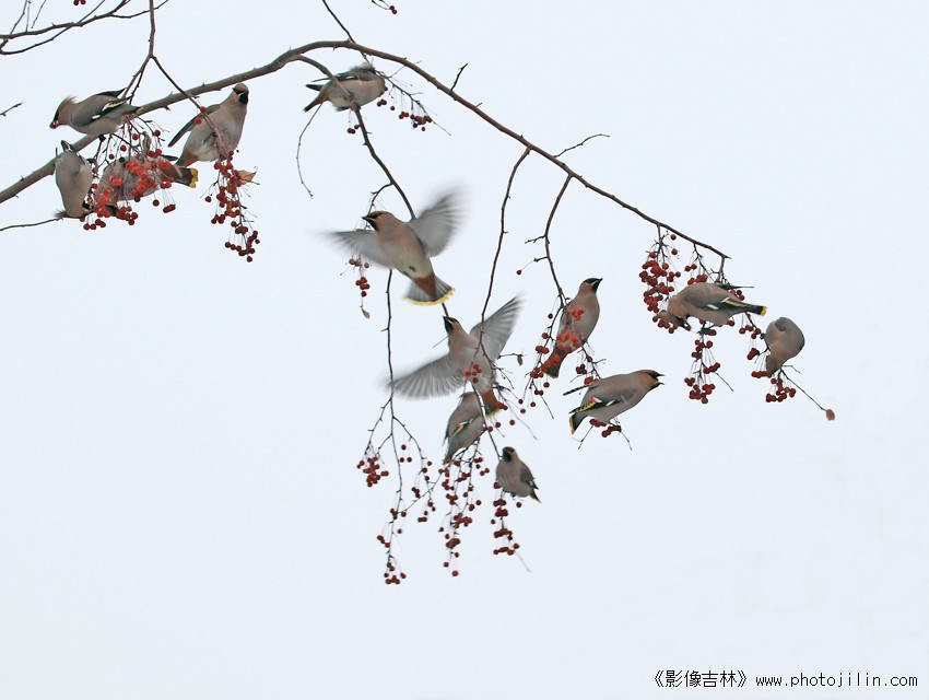 非常漂亮!构图精巧,太平鸟活灵活现,栩栩如生。作品风格朴实高雅。美感突出!