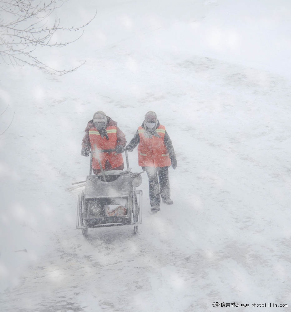 风雪路上清洁工——敬佩。