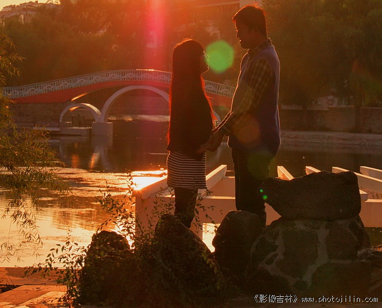 夕阳下的情侣,欣赏
