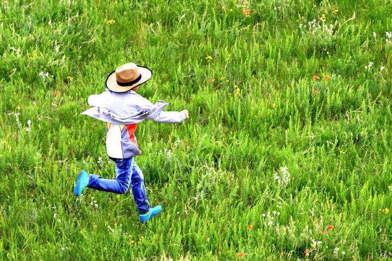 再来个小姑娘扯上手,就更浪漫。这草原真美。