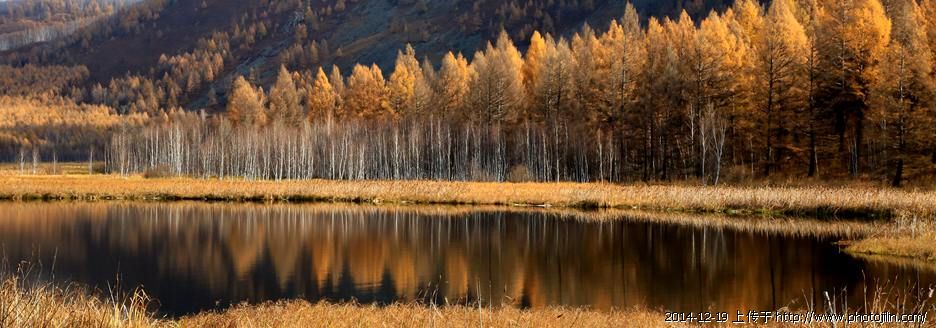 秋山,秋水,秋林,金黄的基调表现出北方特有的秋色。画面秀美,通透,构图很美。