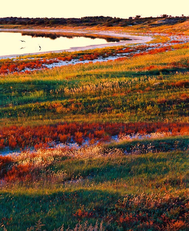 好漂亮的秋色。草地的色彩很有韵律感,一弯秋水为画面增添了活力,两只苍鹭更是画龙点睛。