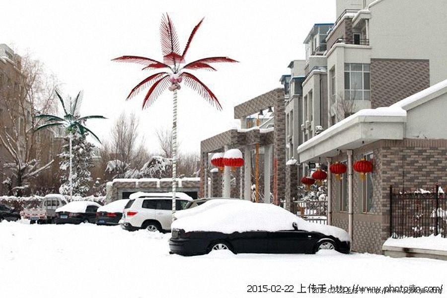 好大的雪,素色画面中却充满喜庆。欣赏,问好。