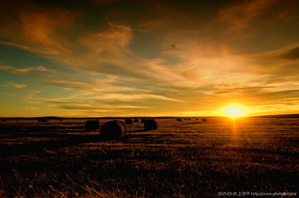 落日霞光映草原