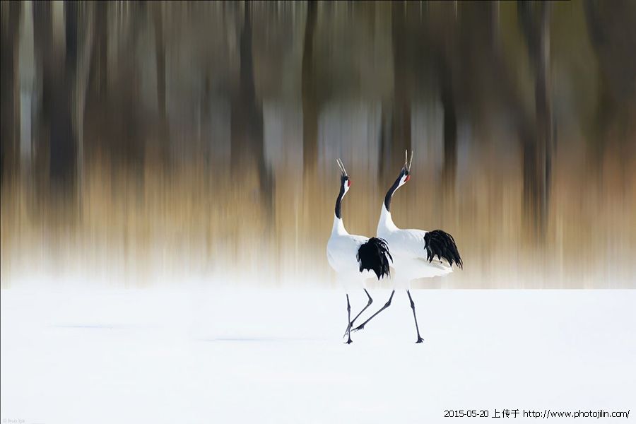 作品以明快的基调,迷人的背景,一对翩翩起舞的丹顶鹤为主体,组合成一幅美轮美奂的艺术画面,简直棒极了。