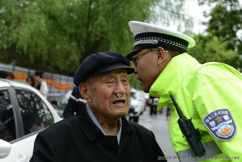 2015年6月8日9点钟刚过,在考点执勤的吉林省白城市公安局交警支队洮北大队王元就遇到了群众救助,95岁的老人哈某,因家人陪同孩子高考,自己出门找不到家了,好心群众把他送了过来。王元耐心向老人询问,但老人不停地流泪,却说不出有价值信息。民警一边上报情况,请求信息查询支援,一边请考生家长和周围群众帮助辨认,用了近40分钟,终于弄清了老人的住址,将老人安全送回家中。
