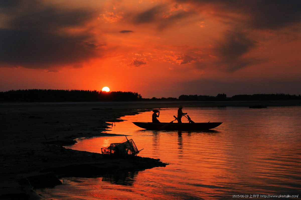晚霞染透向海湖。逆光剪影拍的漂亮!