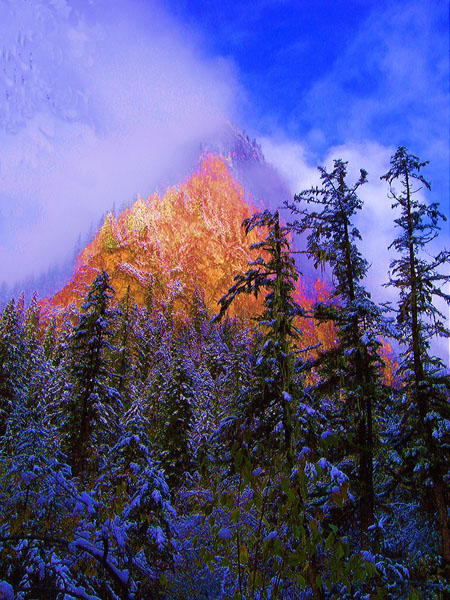 上午在九寨沟全是雾,突沿来了光,我抓怕下来,一会就没来。
