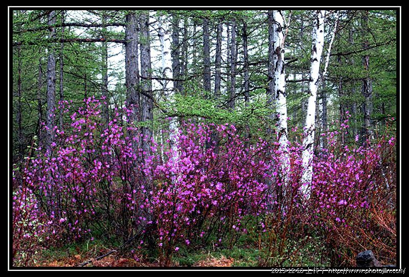 白桦映杜鹃