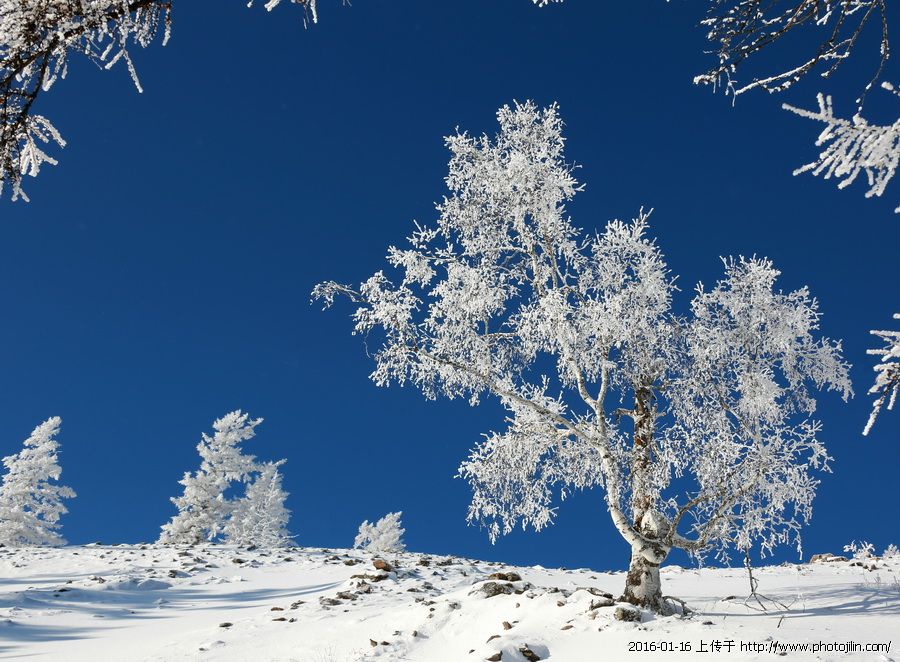 碧空万里,玉树琼花。色调清爽,构图漂亮。