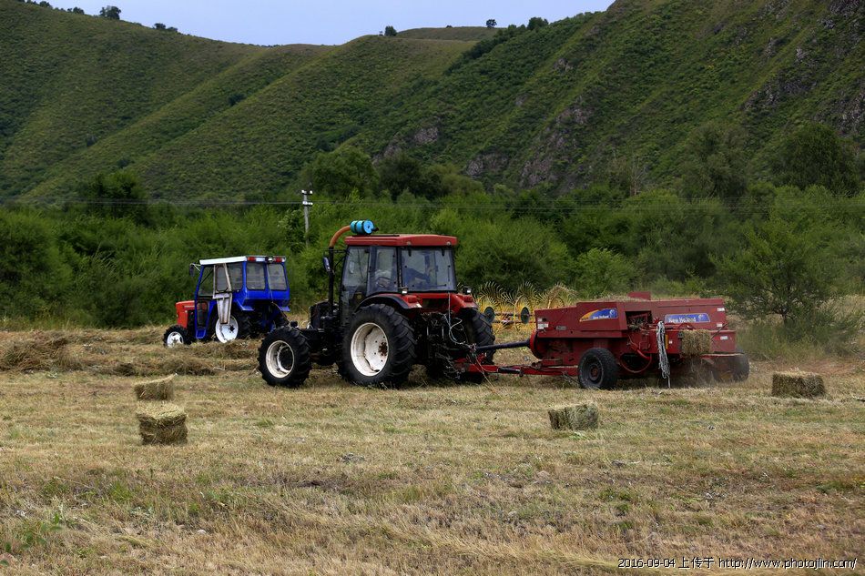 一组现代化的机械捆草过程,片子交代的清楚,画面也很美。