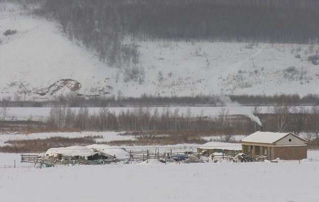 很美的雪中即景,静静的山里人家。很有氛围。