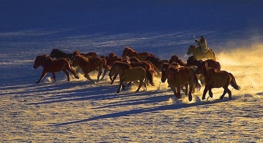 大逆光,金色的霞光,奔腾的马群。。。。。。好抓拍。