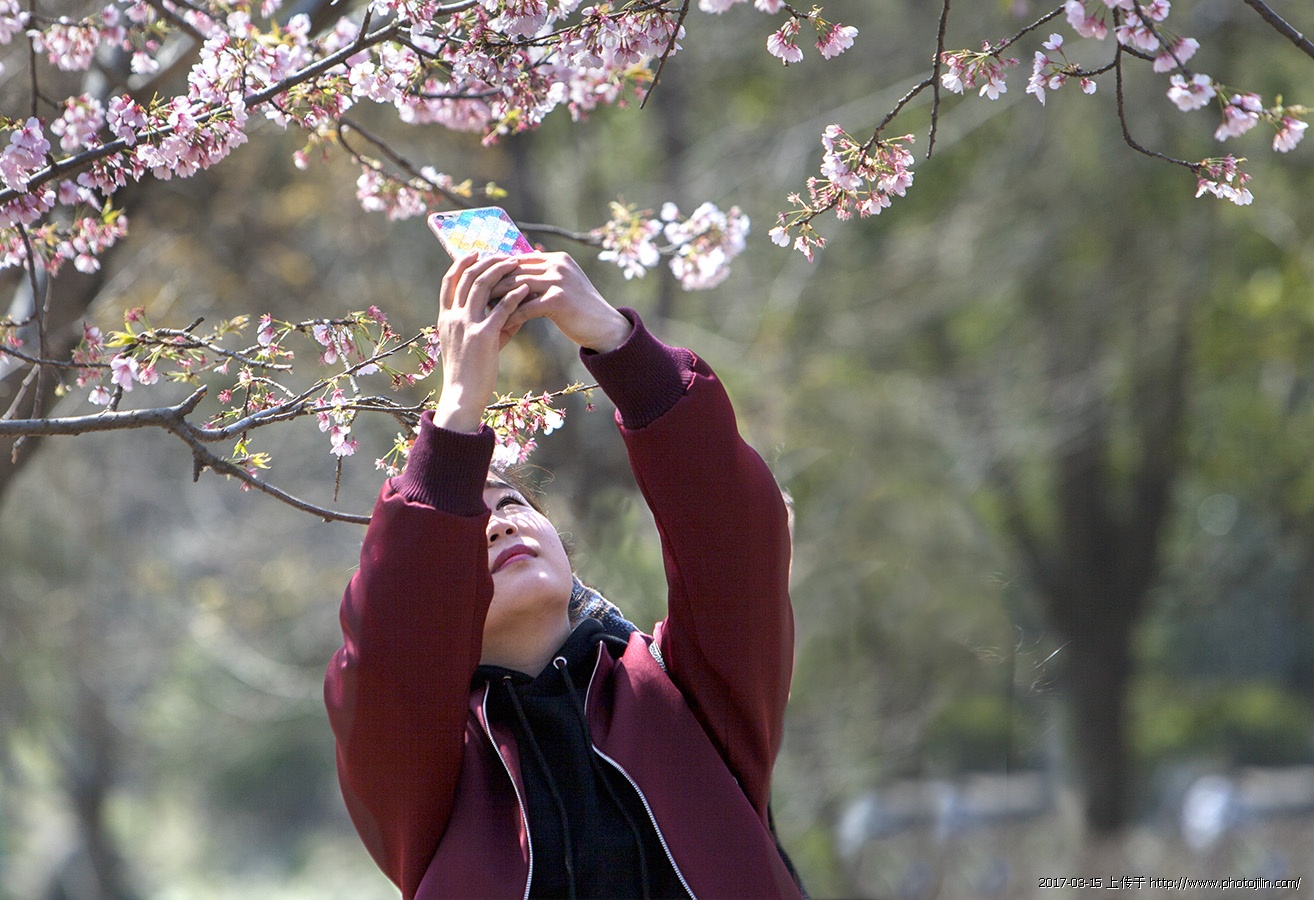 逆光拍照,影调明快而通透,景物轮廓清晰、细腻;徜徉在春天里,人物表情惬意而甜美。
