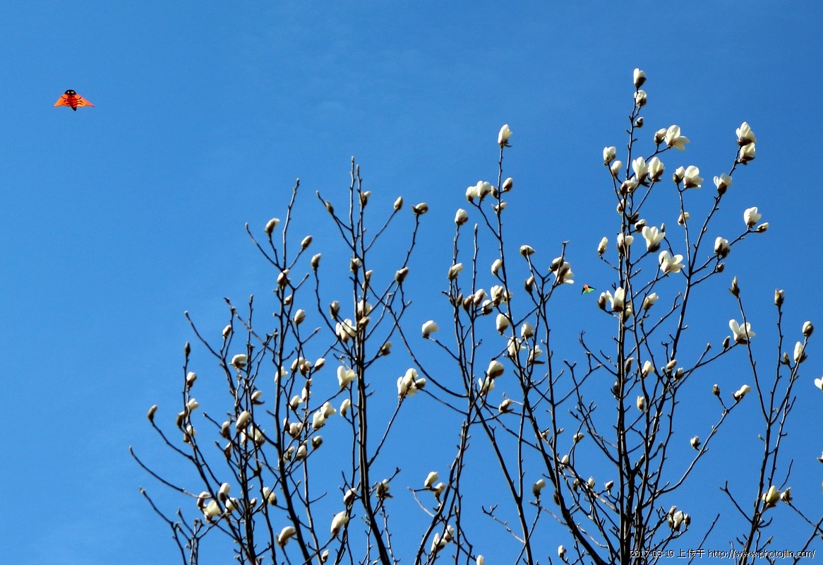 碧空下,风筝游弋,玉兰盛开,不由人极目长天,心旷神怡,对于经历过严冬的人来讲,春天真的很美好。抒情篇,漂亮。