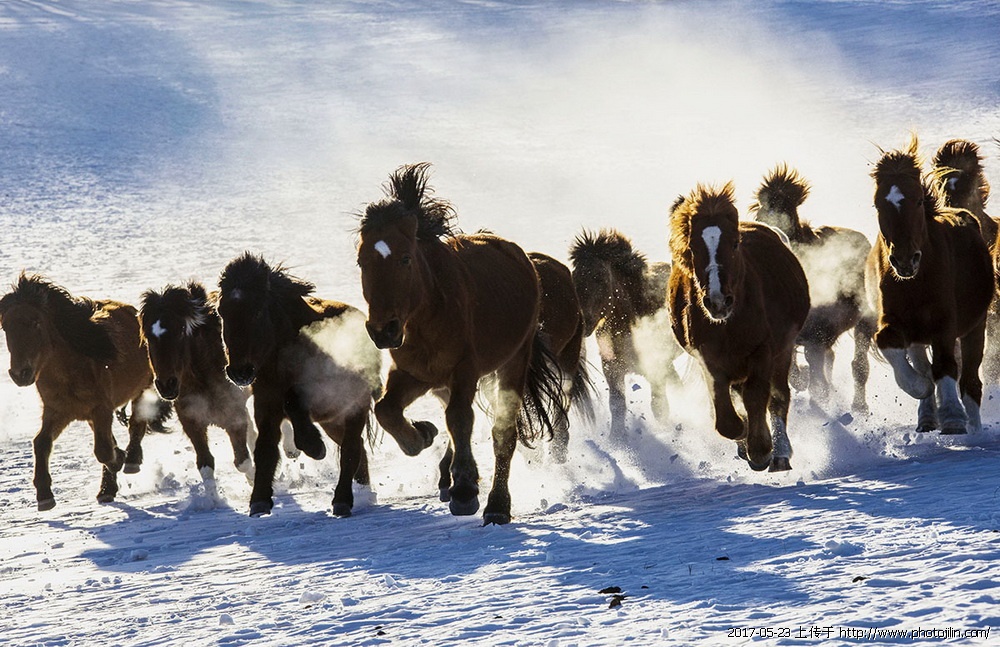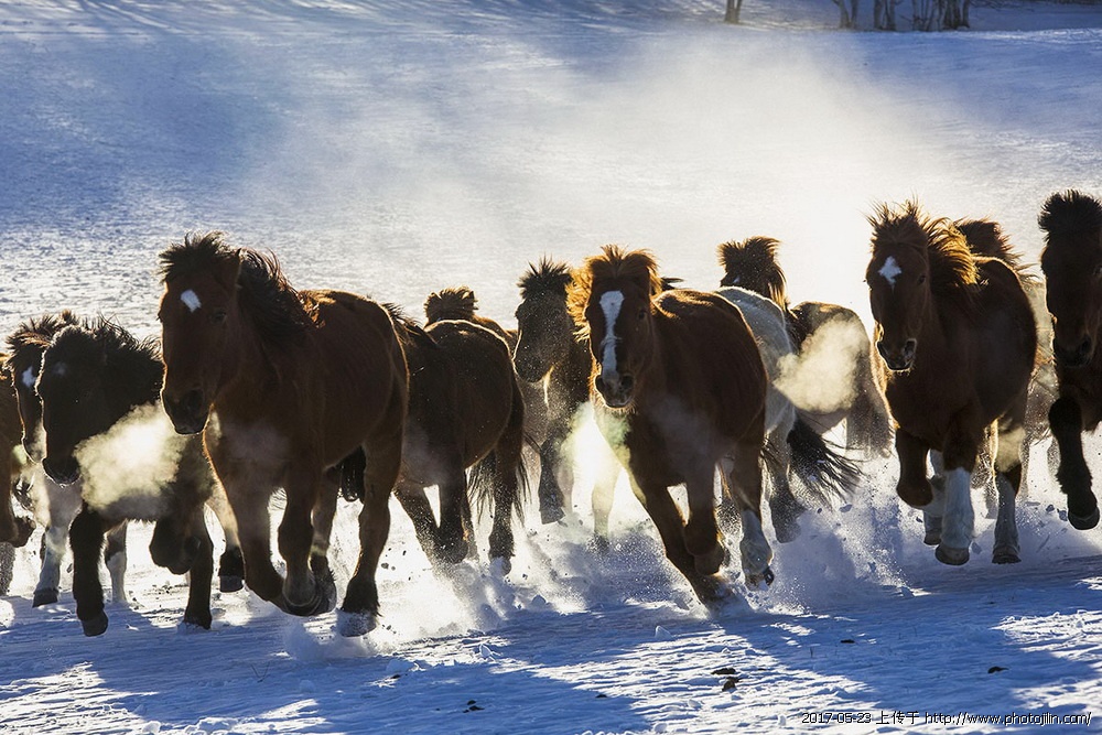 马踏飞雪,精彩拍摄。