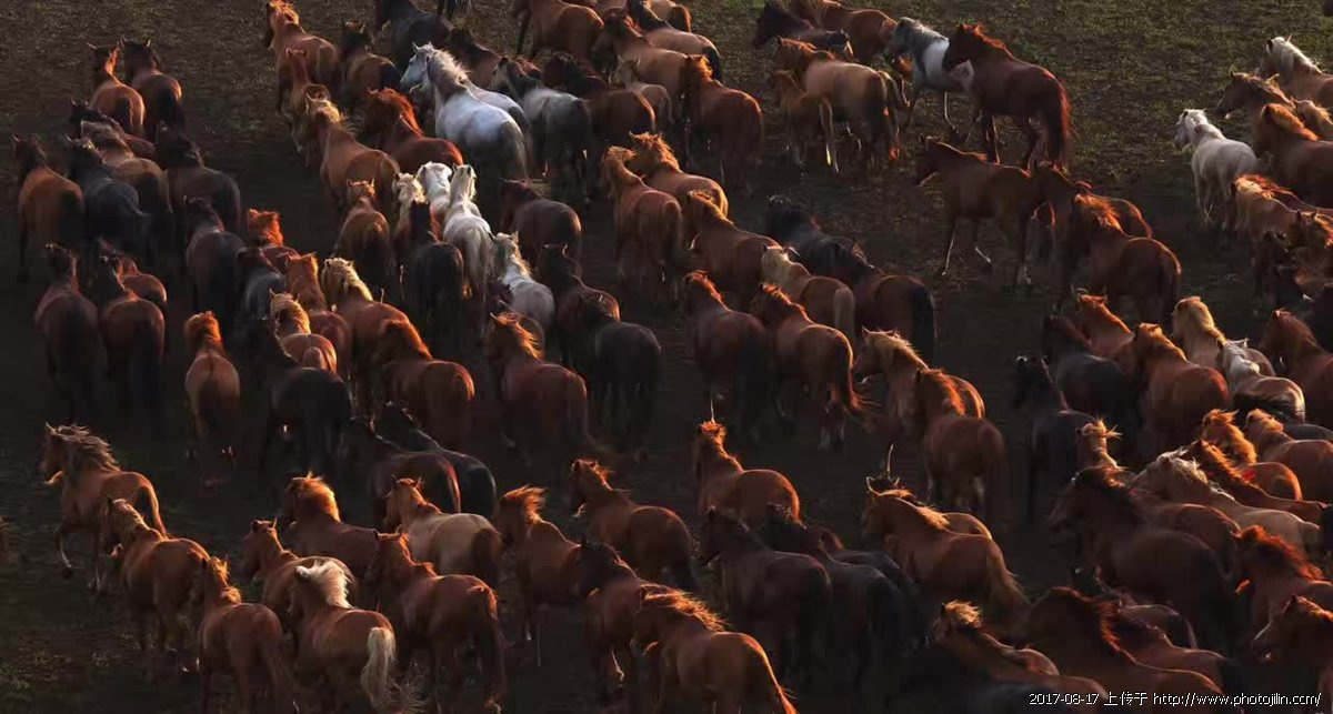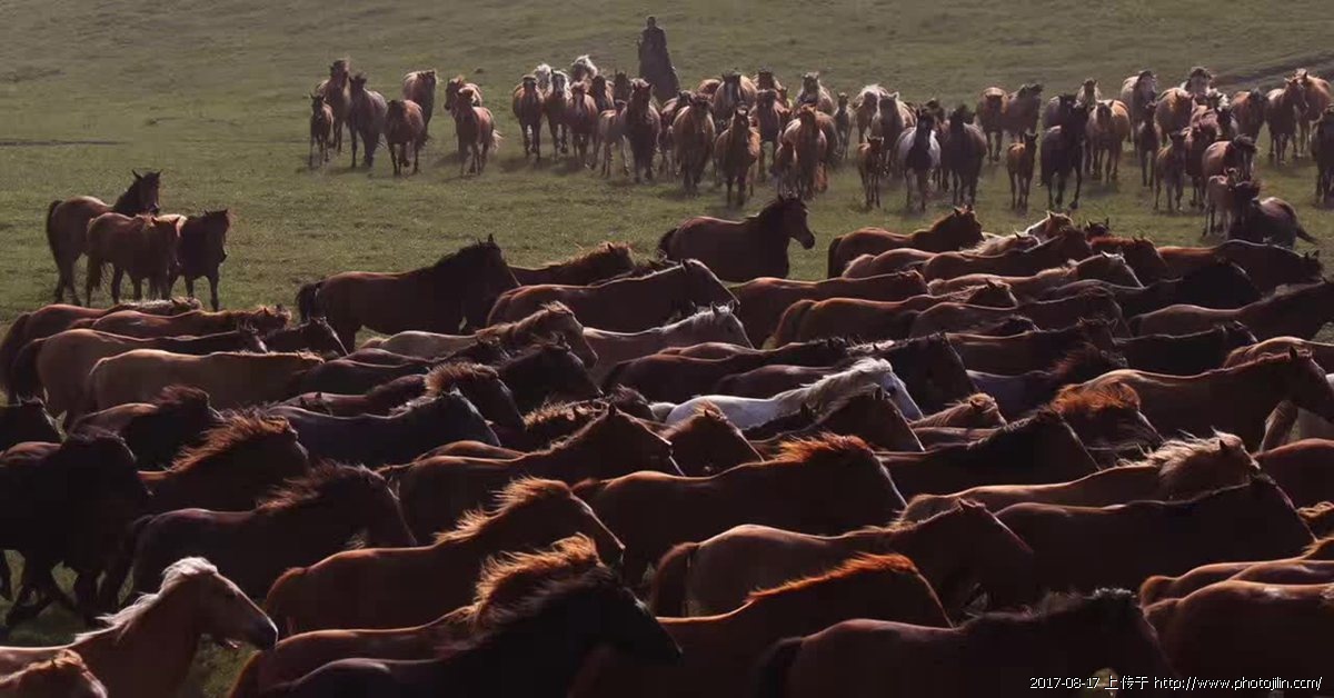 罕见的场景,万马奔腾,气势磅礴。展现草原的壮美与迷人风情。赞赏美片。