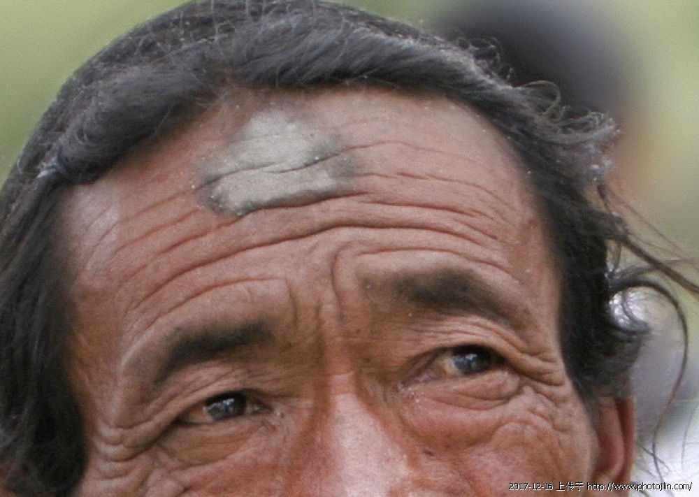 西藏日喀则路上的长拜者,从家里到拉萨要走几个月,漫长的路上,三步一腹地,五步一叩头,头部叩头已经叩出老茧了。